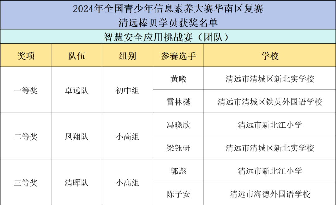 清远棒贝3支队伍参加了本次大赛的智慧安全应用挑战赛项,经过线上初赛角逐,3支队伍代表清远晋级至华南赛区(广东)复赛。