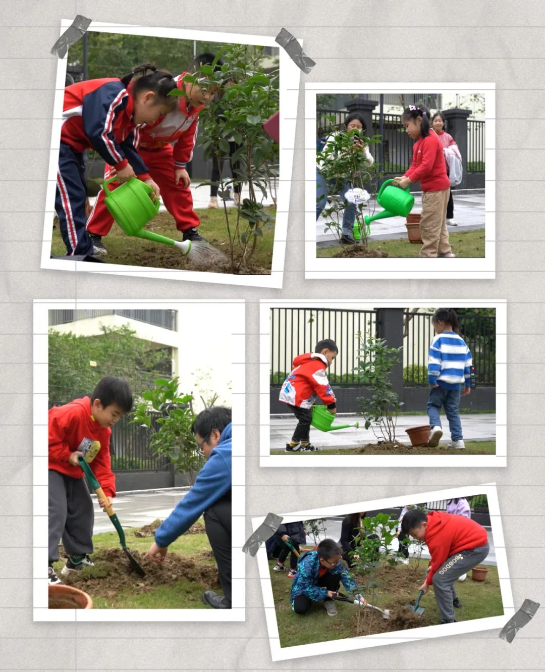 经过共同努力,原本空旷的土地上如今已挺立起一排排崭新的树苗,它们将随风摇曳,茁壮成长,见证着孩子们的成长历程,也为我们的社区增添了一片盎然生机。这一棵棵幼小的生命,是我们共同为地球母亲编织的一道绿色屏障。